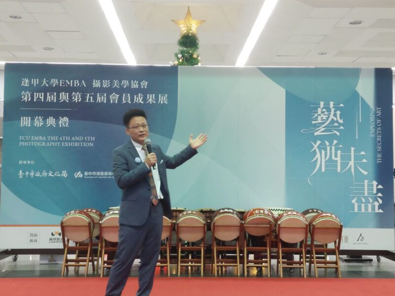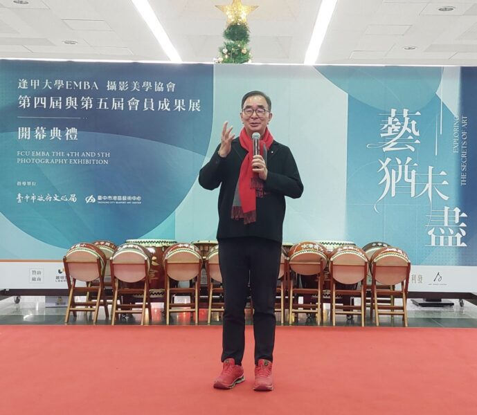 逢甲大學董事長高承恕教授致詞,笑談起逢甲大學EMBA攝影美學協會創立的源起,那一年與EMBA學長姐澎湖遊覽途中,看見吳春山董事長手機內存有拍出鮮明的相片時,而聊到攝影所帶來生活樂趣並突然靈光乍現就有了籌組攝影社團的構思,當下更決定捐出一百萬做為創會贊助金,就此一個屬於逢甲大學特色社團就此孕育,更成為眾所推崇的創會長,以記者實際採訪瞭解,這是逢甲EMBA第7個社團(目前截至2024年底已有9個社團成立)。