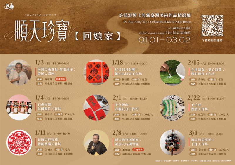 彰化縣文化局於展覽期間特別規劃策展人藝術講座、策展人導覽、藝術工作坊及定時導覽服務,填寫學習單即可獲得美術館十周年紀念小禮,活動精采豐富,此外,特展期間過年不休館,將出動數百名志工共超過1,068班次協助展場及導覽服務,歡迎全國鄉親來彰化觀展遊玩輕旅行!