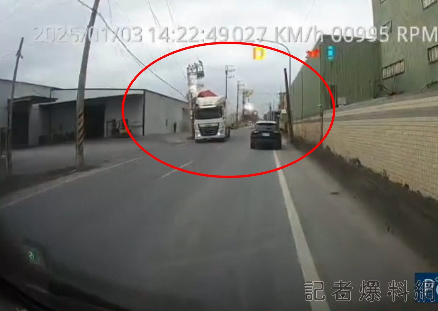 【賴傳媒 謝建成/桃園報導】桃園市蘆竹區日前發生一起重大交通事故,一輛大型貨車因未收妥鷗翼式車門就上路行駛,導致扯斷路邊電線桿,造成連環損壞,現場火花四射,所幸未造成人員傷亡。事故影片在社群媒體上引發熱議。