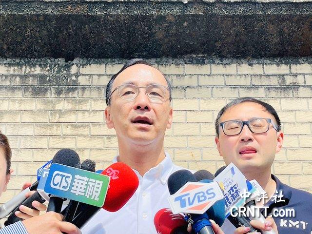 朱立倫今日上午偕國民黨立委參選人李彥秀、廖先翔至新北市汐止區橫科市場掃街拜票,會前接受媒體聯訪。