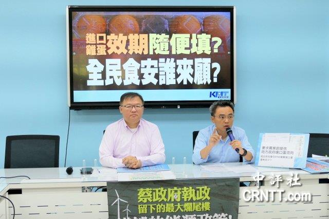 中國國民黨團今日再度召開記者會,痛批農業部專案進口雞蛋的日期、數量和流向都不清楚,並指出有多個國家的進口雞蛋出現製造日期和有效期限的標示錯誤,要求台“農業部”長陳吉仲出來說明,並公布庫存量和流通情況。