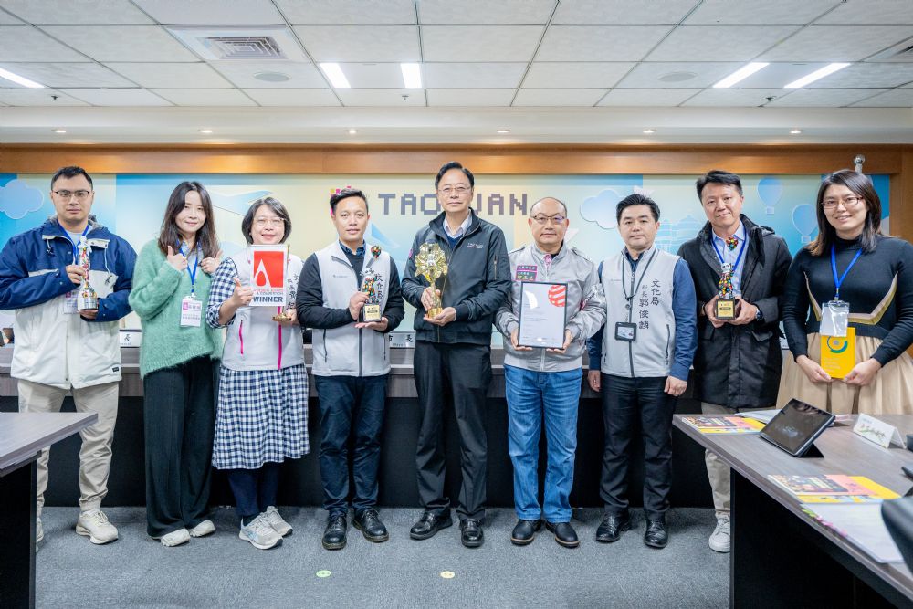 桃園市長張善政昨(2)日下午主持市政會議,接受文化局呈獻市府藝文活動榮獲7座國際獎項。張善政表示,文化局主辦的各項藝文活動,「美感」皆是重要核心指標,此次呈獻7座代表性獎項,僅是眾多榮耀中的一部分。能夠屢次獲得各項國際殊榮,不僅展現桃園深厚的文化底蘊,更是文化局人員不懈努力的成果,期勉來年繼續精益求精、再創佳績,持續為桃園文化發展增添光彩。