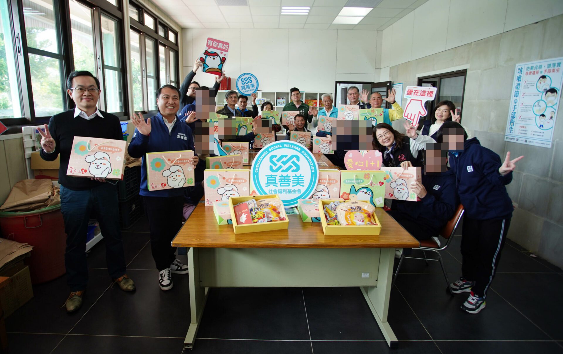 為鼓勵在地機構憨兒,並感謝「真善美社會福利基金會」多年來對於弱勢族群的照顧與努力,涂權吉邀請愛心企業-「緻圓股份有限公司」董事長陳興,大舉採購由「新屋小作所」代工,「真善美社會福利基金會」與快車肉乾合作聯名的兩款新年禮盒。