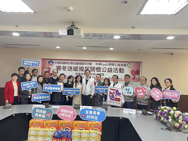 社會局表示,本次捐贈儀式由婦聯會桃園市分會市主委張琦雅發起,中華Fun心關懷公益協會理事長陳玉君響應,邀請熱心公益的全聚馥國際食品有限公司、連霆環保科技公司、新瑞倡企業股份有限公司、映海國際科技股份有限公司、敏盛醫療集團及台灣康匠製造股份有限公司等優良企業主,共同捐款購買禦寒物資,嘉惠桃園區、八德區、平鎮區及復興區等260位獨居長者,每位長者可獲得1,000元春節慰問金、保暖帽1頂、圍巾1條、毛襪2雙、暖暖包1組、口罩2盒及沖泡式熱飲包1箱,合計價值超過100萬元。