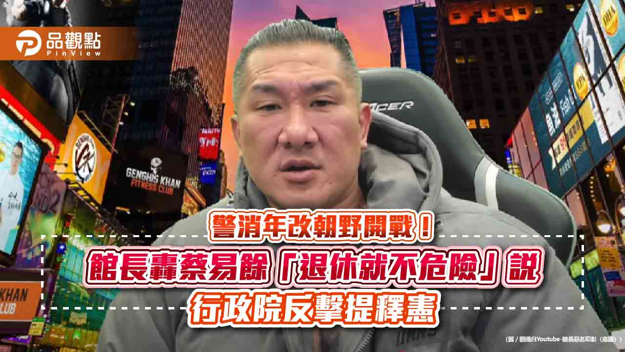立法院日前三讀通過警察人員人事條例修正案,將警察、消防、海巡等人員退休所得替代率上限提高至80%,引發朝野激烈交鋒。行政院長卓榮泰直指立院未徵詢行政院意見且未說明財源即通過法案「嚴重違法」,將提出憲法救濟;民進黨立委蔡易餘更以「退休就不危險」為由質疑修法必要性,引發網紅「館長」陳之漢強烈抨擊。