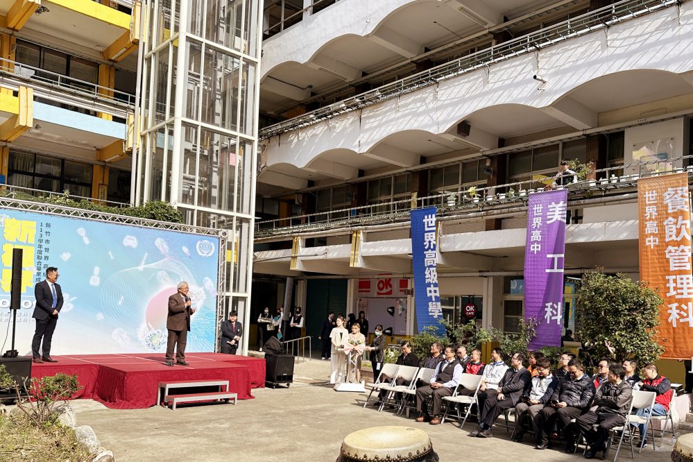 世界高中此次「新視界」畢業聯展盛大登場,與會貴賓雲集,尤其是竹苗地區知名的科技大學均派重要代表共襄盛舉,包括中國科大、育達科大、敏實科大、明新科大等。事實上,在大新竹地區學子苦於普通高中有限選擇的天時條件下,位於竹科旁邊享有地利條件的世界高中,若策略性轉型相信將是鄰近地區的家長們樂觀首選讓孩子選擇就讀的私立高中。此次世界高中畢業聯展以「新視界」為主題,正式揭開2025新一年發展序幕,或許將為世界高中推向一個具有「創造、創意、創新」風貌的學校。