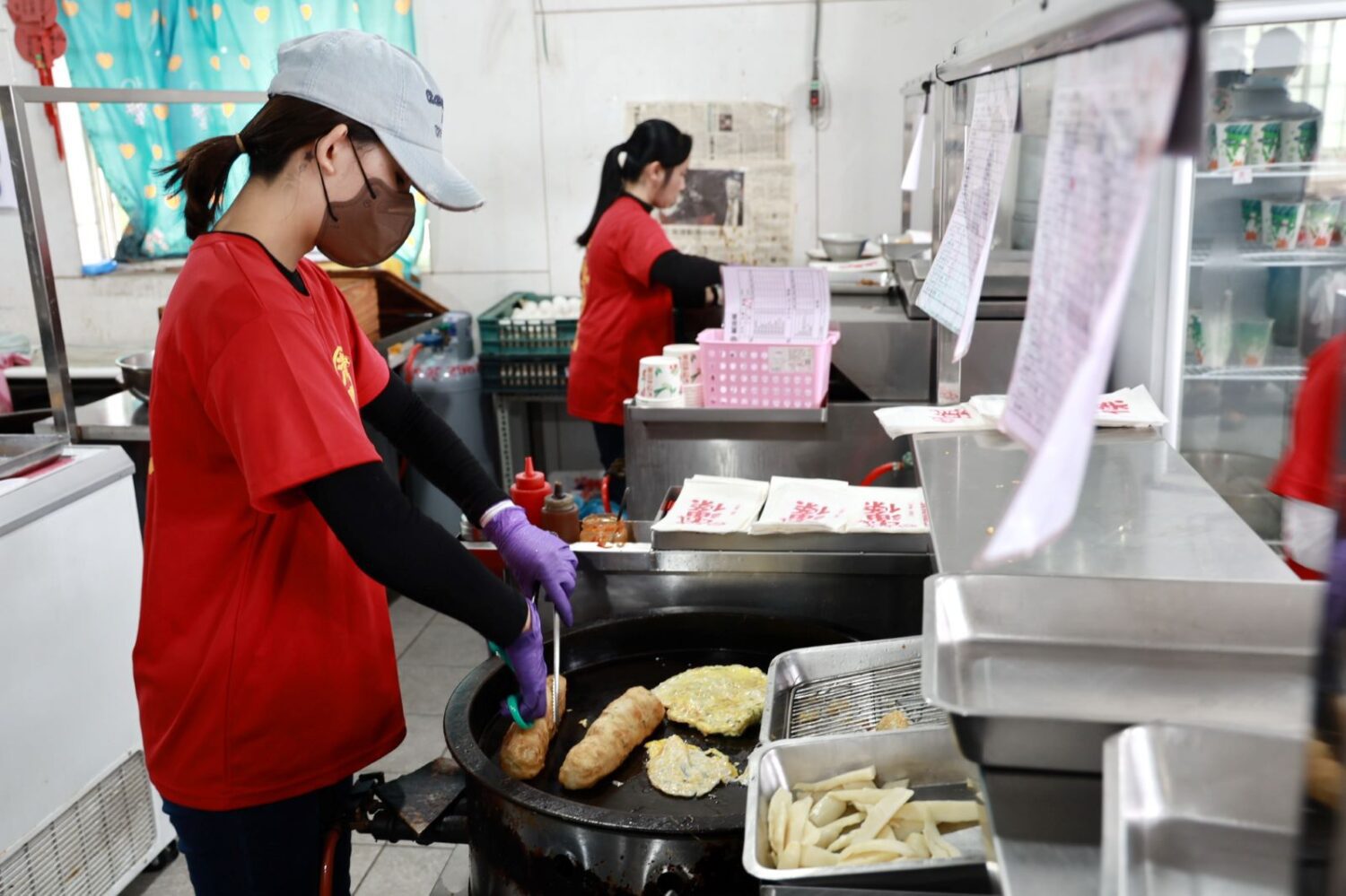 ▲中興新村南營路上的「包葉扣仔嗲」,一大早就聚集了很多阿公阿嬤都是志工,主動前來幫忙店家洗菜備料,已成為社區長輩們聊天聚會的中心。(圖/南投縣政府提供)
