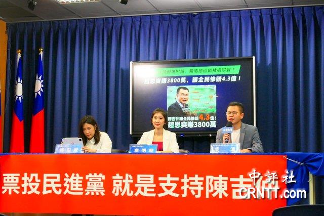 國民黨智庫國家政策基金會副執行長兼桃園市議員凌濤、國民黨發言人兼高雄市立委參選人李明璇、國民黨2024參選人侯友宜競辦發言人兼台北市議員柳采葳,今早在國民黨中央舉行“傳陳吉仲請辭切割?賴清德還能持續噤聲?超思爽賺3800萬,讓全民慘賠4.3億!”記者會。