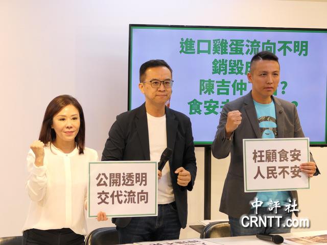 侯友宜競選辦公室今日召開“進口雞蛋流向不明,銷毀成謎—陳吉仲下台?食安未爆‘蛋’!?”記者會,由侯友宜競選辦公室發言人黃子哲主持,國民黨立委參選人李彥秀、新北市議員陳偉杰出席。