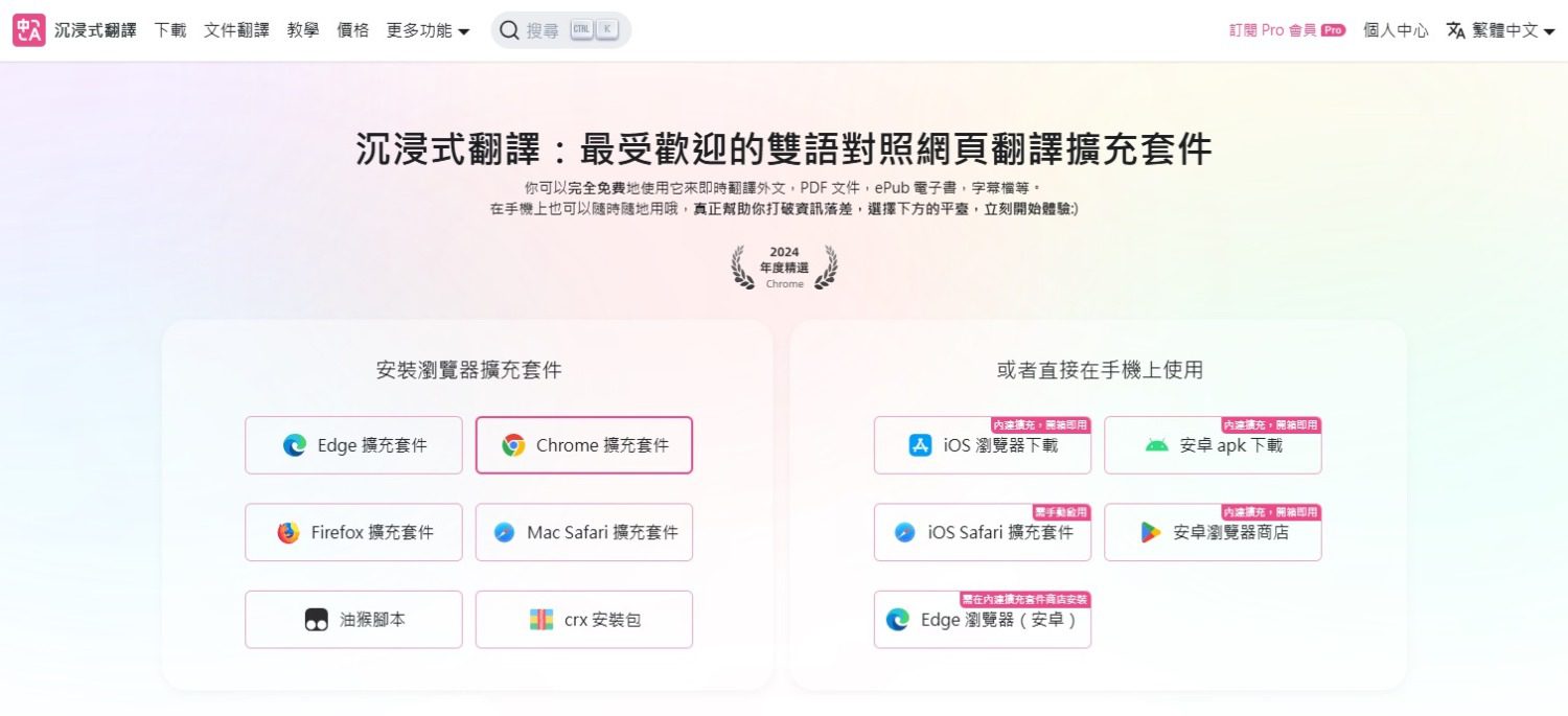 ▲Google年度精選推薦沉浸式翻譯重新定義翻譯工具。沉浸式翻譯能夠精準識別網頁主要內容區域,提供流暢的雙語對照翻譯,不須開啟過多網頁。(圖/業者提供)