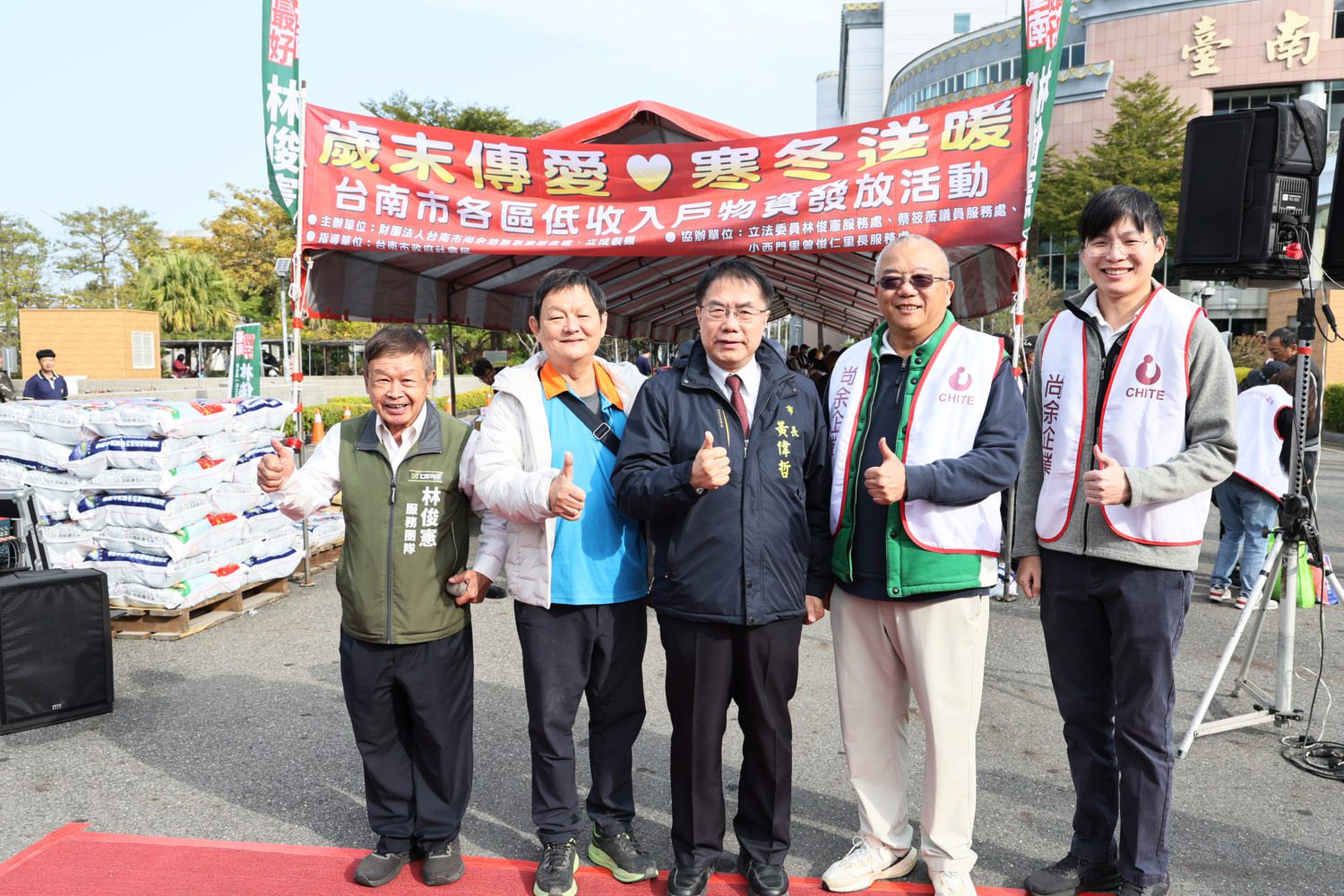 【今傳媒/記者張淑慧 報導】為響應臺南市政府照顧弱勢之政策,臺南在地廠商尚余企業股份有限公司成立慈善基金會捐助弱勢民眾,今(11)日該基金會與立成製麵共同辦理低收入戶白米及物資發放活動,臺南市長黃偉哲也到場致意,盼公私協力助民眾暖心過好年。