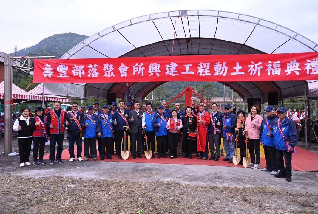 壽豐鄉公所今(12)日於壽豐鄉衛生所前面廣場舉辦壽豐部落聚會所動土祈福典禮,縣長徐榛蔚在原住民行政處長馬呈豪、壽豐鄉長曾淑懿的陪同下出席,多位民意代表、部落頭目以及地方紳士等也到場祝福工程順利,盼部落聚會所的興建,能營造部落宜居環境,讓原民文化代代傳承、延綿不朽。