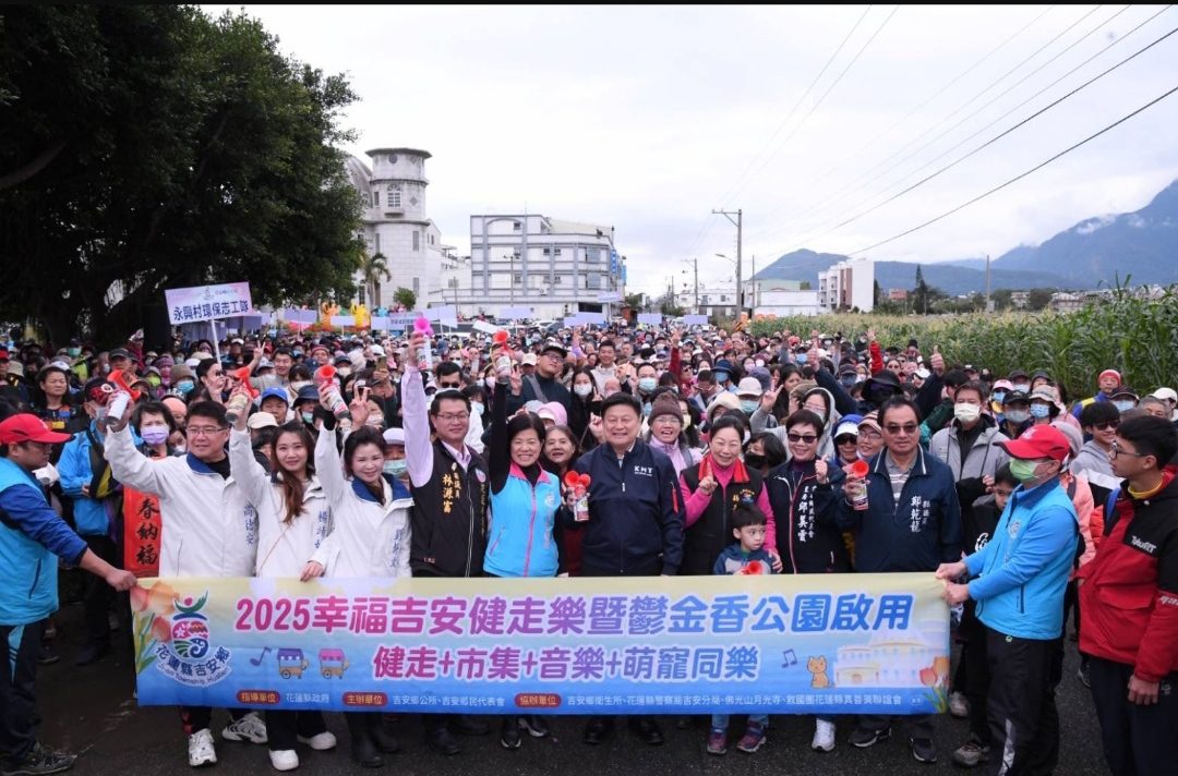 吉安鄉公所今(11)日辦理「2025幸福吉安健走樂暨鬱金香公園啟用」活動,縣長徐榛蔚偕立委傅崐萁在吉安鄉長游淑貞陪同下,共同出席與鄉親同樂。除了有戶外健走活動外,現場也設有市集攤位,讓鄉親安心採購,一起支持小農自產自銷農特產品。