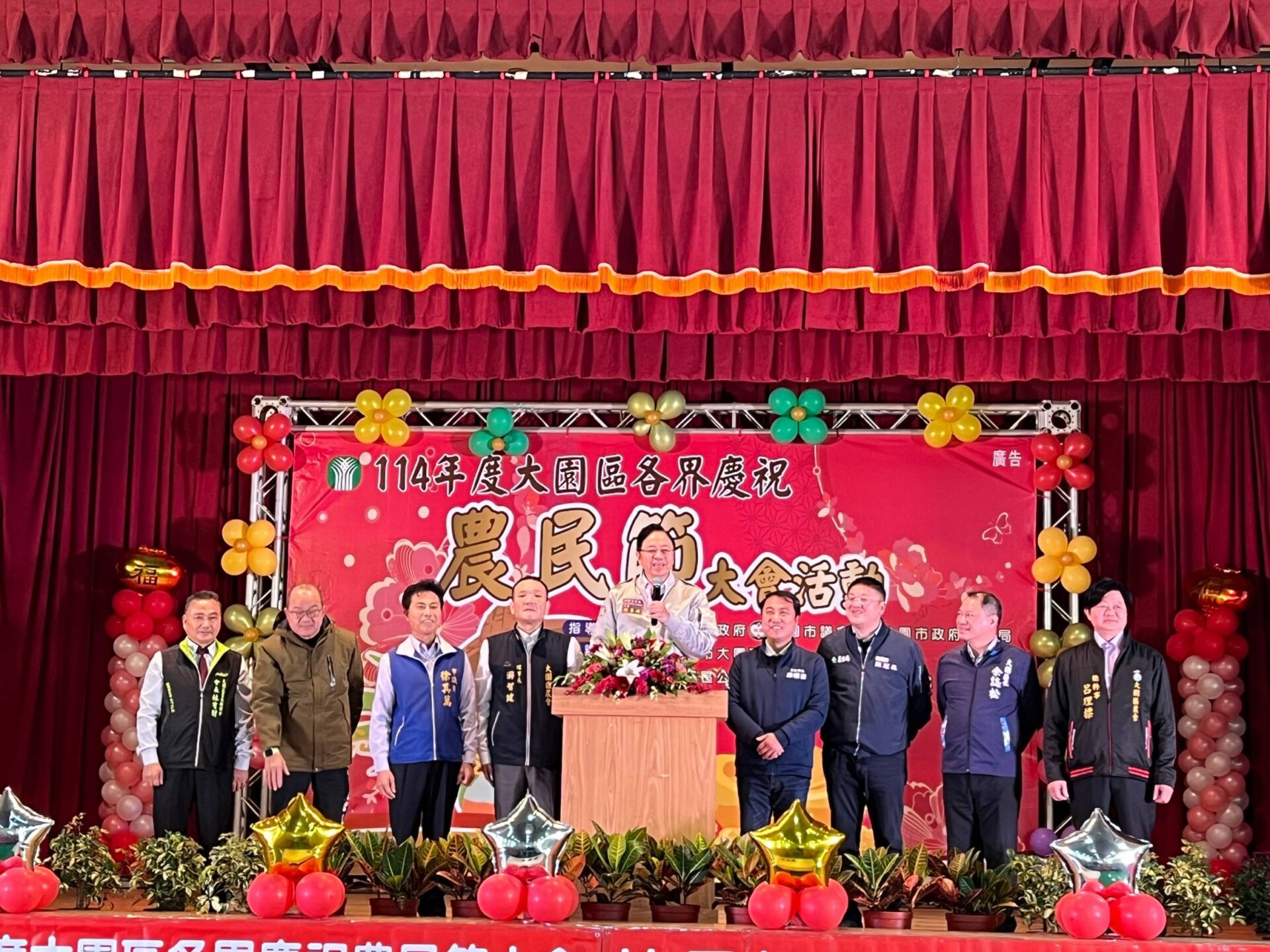 今(1月13日)日大園區各界慶祝114年度農民節大會,大園區農會民國4年創立,已超過100年,更於112及113年度連續兩年榮獲「農金獎」營運卓越甲組優等獎,表現非常亮眼,農會金融服務對農民生活穩定及農業發展十分重要,此外,大園農會也協助航空城計畫範圍內居民,規劃航空城安置住宅貸款及航空城街廓配地重建貸款專案,以減輕貸款成本負擔,大園區農會繼續推動農業創新,促進地方農業永續發展。