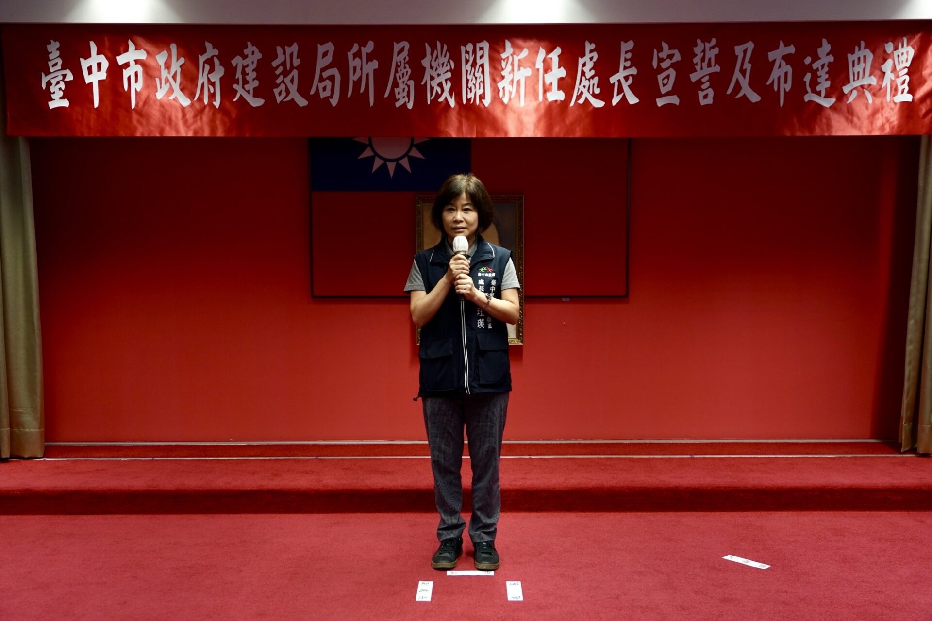 白玨瑛表示,建設局、新工處和養工處是一個溫暖的大家族,有幸接任養工處處長職務,感謝局長、2位副局長、總工、專委的愛護,與各位伙伴的協助,榮幸成為建設局二級機關第一位女性處長,顯示台中市政府對性別平等的重視,也給予女性展現能力的舞台。