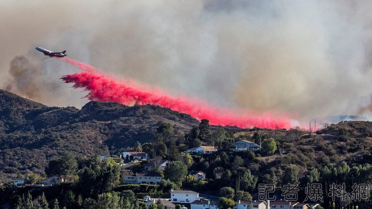 【賴傳媒 林千允/綜合報導】洛杉磯大火延燒一周未熄,當局持續以飛機噴灑阻燃劑應對。隨著聖塔安娜季風增強,消防部門加緊防範火勢蔓延。從空中俯瞰,桃紅色的阻燃劑籠罩樹木、街區與公園,為城市染上特殊色彩。
