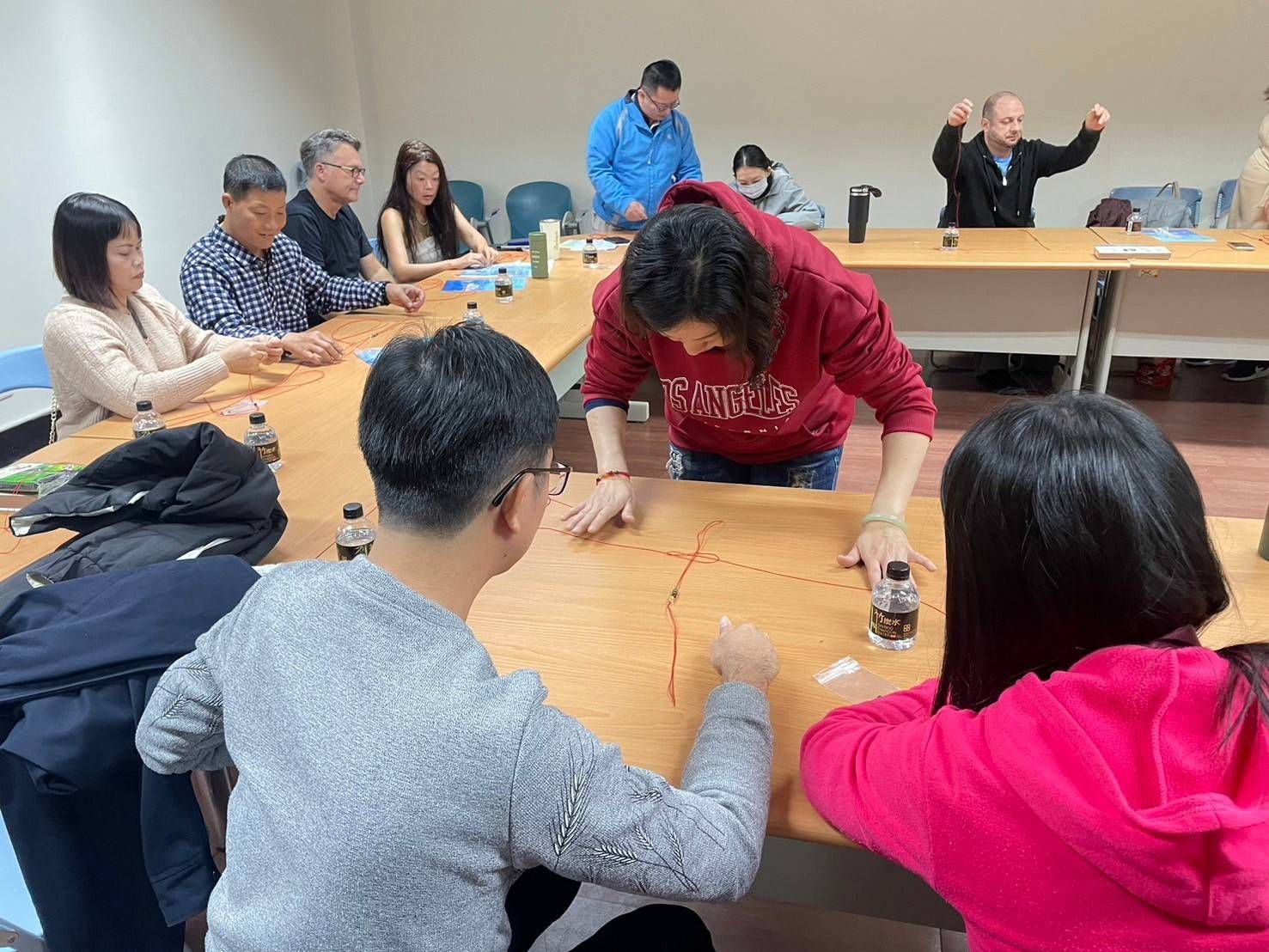 話剛說完,程老師手中的繩就已經打好了吉祥結、雙錢結,讓現場的新住民直呼神奇!參與活動的新住民丁女士笑著說,這是我第一次編織手作,雖然一開始有點困難,但在大家的幫助下完成後感覺特別有成就感。來自美國的新住民夏先生也分享,這樣的活動讓我覺得很溫暖,感受到融入臺灣的快樂,活動最後,大家高舉手中的手作合影,為彼此送上新年的祝福。