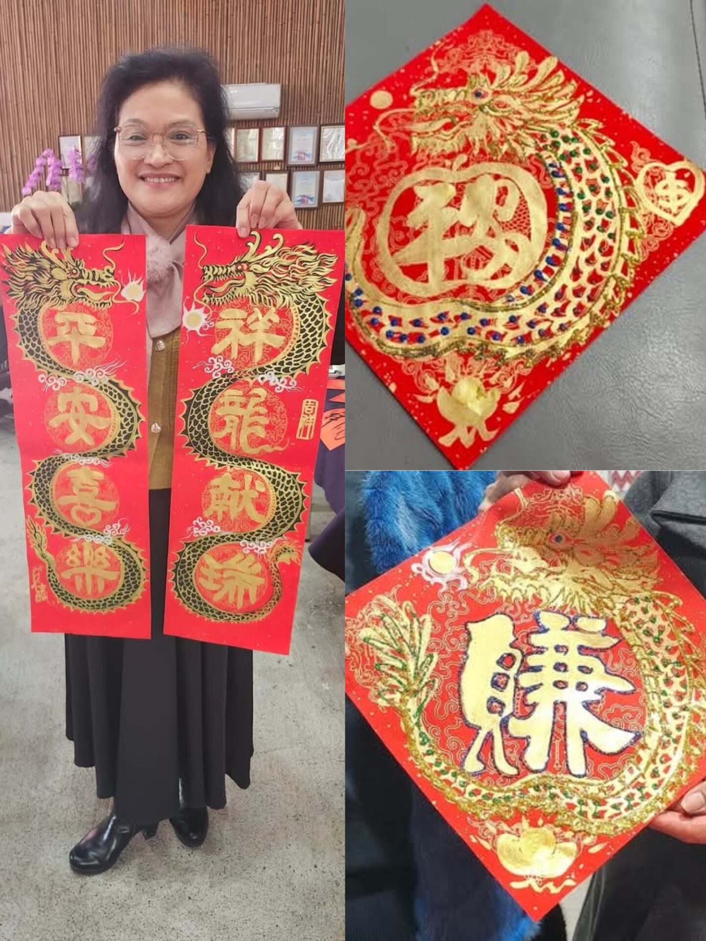 臺東關山鎮書法協會理事長鄭聘嬴接受本報採訪時表示,喜愛她的創意書法春聯,民眾除了一連四日可以在臺東市的市公所、臺東郵局以及佛光山金剛寺之外,也可以近期在鹿野鄉永安聖安宮現場索取限量款春聯。