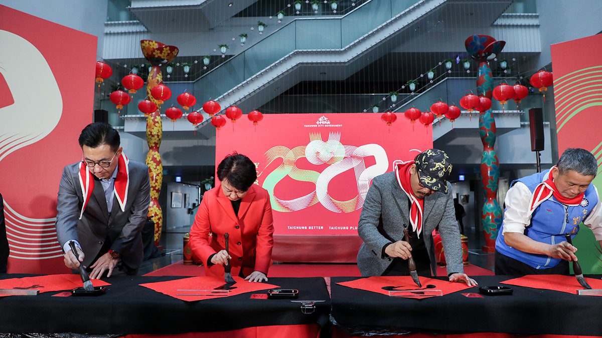 台中市政府於15日舉辦「114年迎新揮毫贈春聯」活動,喜迎蛇年的到來,特別邀請知名作詞人兼藝術家方文山與盧秀燕市長同台揮毫,為市民帶來滿滿祝福。盧市長在活動中揭曉兩大驚喜,包括由方文山親筆揮毫的三款賀聯「蛇現幸福」、「福兆蛇年」與「蛇咪龍賀」,其中家戶版「蛇現幸福」將由各區公所發送,限量版「福兆蛇年」與「蛇咪龍賀」則於活動現場限量發放,吸引大批市民熱烈參與。