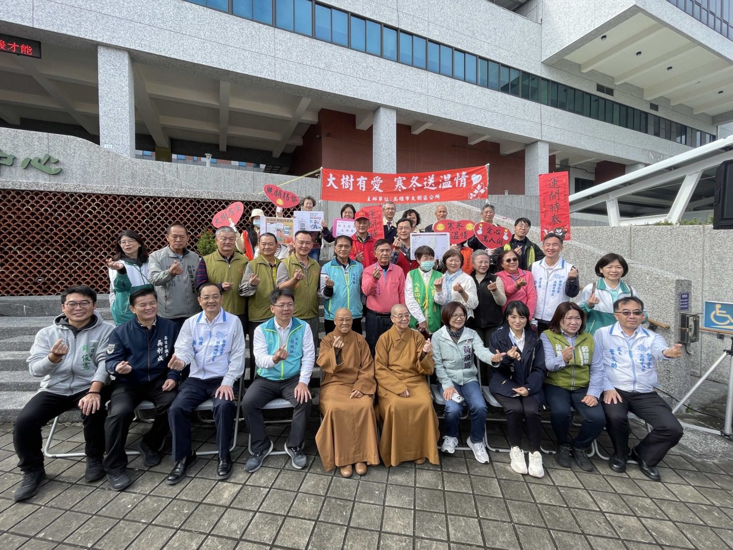 「大樹有愛、寒冬送溫情」活動十八日上午於大樹區行政中心前道路登場,台塑企業及慈善團體等設攤,發放慰問金、民生物資給低收入戶及邊緣戶,台塑貼心提供大型置物袋,讓弱勢家庭方便領取愛心物資帶回家。現場亦有贈春聯服務,氣氛溫馨。