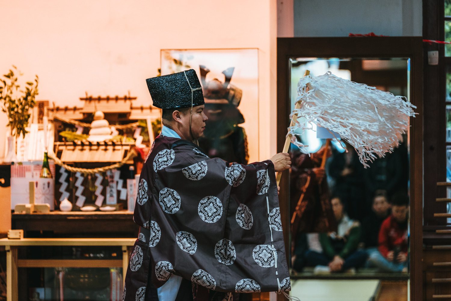 高雄市劍道文化促進會理事長陳信寰表示,祈願祭的高潮是神事的儀式,本次特邀請石鎚神社本教教師陳凱鈞擔任祈願祭儀式的神主,台灣日本神道崇敬會理事長李明勳擔任巫女,負責演示神樂舞,進行日本神社規格的儀式。祈願祭除了淨化、祈禱之外,還有神樂舞的奉納,這些傳統儀式即便在日本也不常見,通常只有重要祭典才有機會看到!另外,體驗活動中最受歡迎的「搗麻糬」(把糯米蒸過後搗成的「麻糬」),亦有感謝前一年「五穀豐收」之寓意,因此祈願儀式開始前,要向神明供奉的「鏡餅」,就是把圓餅形的麻糬堆疊起來做為裝飾。