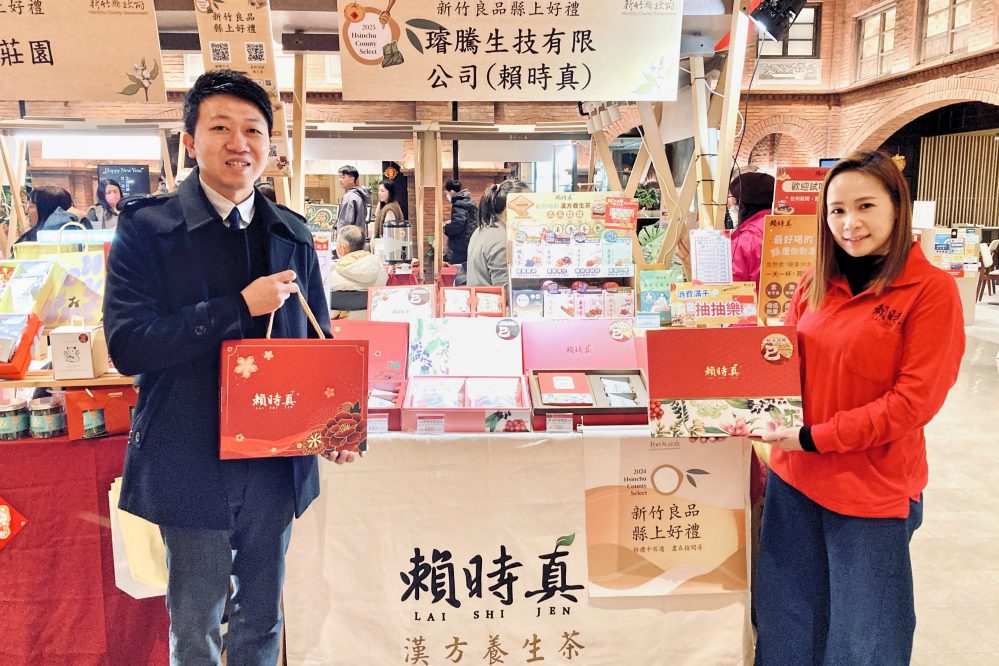 ▲「新竹良品.縣上好禮」年節前展售活動即日起至1/26在竹北遠百7樓好康登場,搭配這場年貨大街抽獎活動,深獲竹科社群喜愛的賴時真漢方養生茶特別再加碼提供折扣與好康贈禮,希望讓消費者逛得開心、滿載而歸。