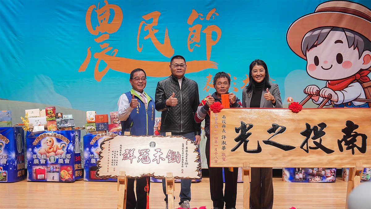 表彰大會由縣政府委託南投縣農會舉辦,現場聚集全縣農業菁英與農業團體,南投市長張嘉哲也親臨現場致意。活動以舞獅表演揭開序幕,氣氛熱烈。草屯農民李啟元特別向許縣長報告113年度農業生產佳績,他以優質台稉9號稻米,在全國稻米達人選拔中奪下冠軍,為南投爭光。縣長許淑華特別頒發「南投之光」牌匾給李啟元,表揚其卓越表現,同時肯定多位模範農民、入選農業部「百大青農」的青年農民,以及農會等單位對南投農業的貢獻。去年南投縣共有12位青年農民入選「百大青農」,展現青年投入農業的活力與創新。