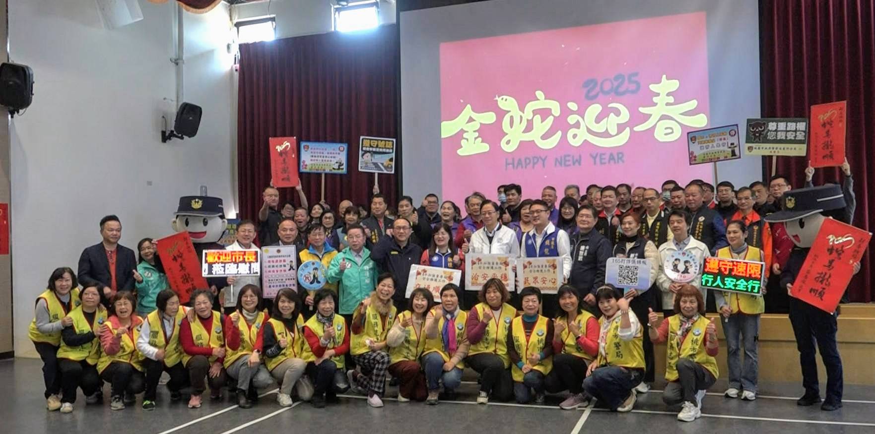張善政於活動中頒發春節慰勞金及禮券給辛勞的警察,分別由楊贊鈞及南崁所長江弘裕代表受頒,張善政特別提到感謝吳坤旭帶領警員努力下,遠見雜誌去(113)年城市評比,桃園市治安第一名,這表示市民對於治安的改善是有感的。去年的除暴專案主動出擊,讓桃園可能發生的案件提前防範。過去這兩年是大家共同努力的成果,警察為了讓民眾能安全返鄉、安穩過年,犧牲與家人團圓時間,在各自的崗位上肩負維護治安與守護人民的責任,近來警方也加強識詐、防詐、阻詐、打詐等各種手段以免民眾財產損失,此外春節期間面臨更多的人潮與交通運量,特別是即將在A19桃園體育園區站及A18高鐵桃園站周邊舉辦的「2025台灣燈會」更有賴警察堅守崗位,協助疏導交通及維護秩序,感謝警察同仁為了市民的福祉而辛勞付出。