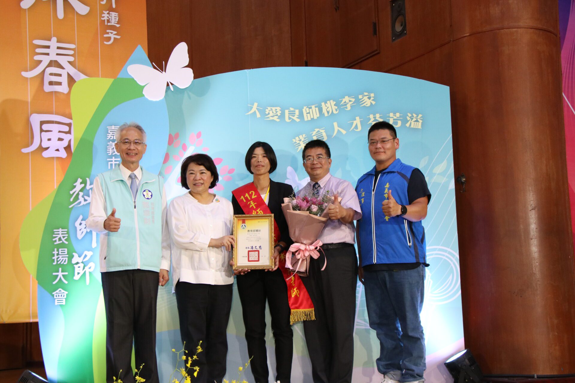 為感謝師恩,嘉義市政府於今(22)日以「大愛良師桃李家 業育人才芬芳溢」為主題,在北興國中辦理112年教師節表揚大會,恭賀僑平國小鄭秀燕老師榮獲教育部師鐸獎殊榮,也表揚242位優秀教師及教保服務人員,市長黃敏惠到場頒獎感謝獲獎師長們的努力付出,並致上最深的祝福,頒獎典禮由興安國小擊興打擊樂團開場演出,並由大業國中熱舞表演精彩串場,各校的校園長、家長會長都到場致意,為師長們送上最大的祝福。