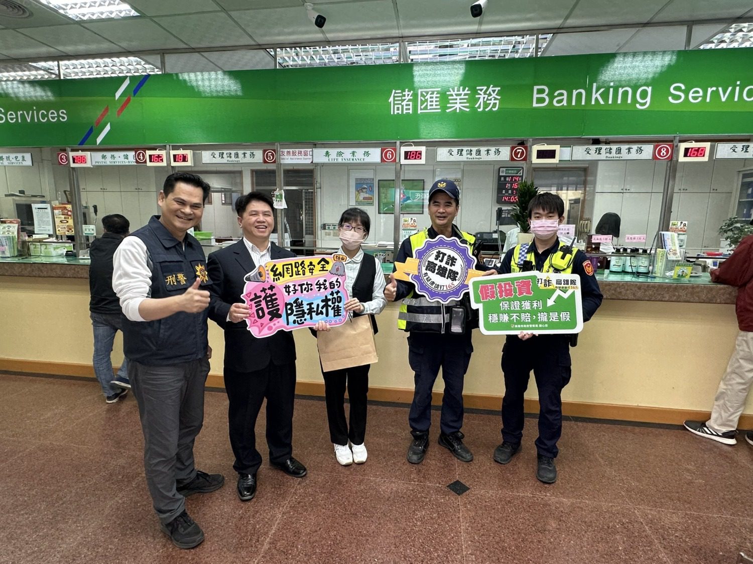 為感謝美濃郵局襄理、行員機警熱心、主動關懷提問並即時通報警方,共同攔阻詐騙義舉,旗山分局副分局長朱和貴特於1月17日前往美濃郵局,頒發獎狀及獎金表揚有功人員,並鼓勵行員繼續保持警覺,遇有疑似詐騙情形主動關懷詢問,並即時通報警方協助。此外,警方也藉此機會於現場進行「識詐」宣導,重點介紹「假投資」、「假交友」、「假買家詐騙」及「假冒公務員」等常見手法,提升行員臨櫃應變能力,有效防堵詐騙案件發生。