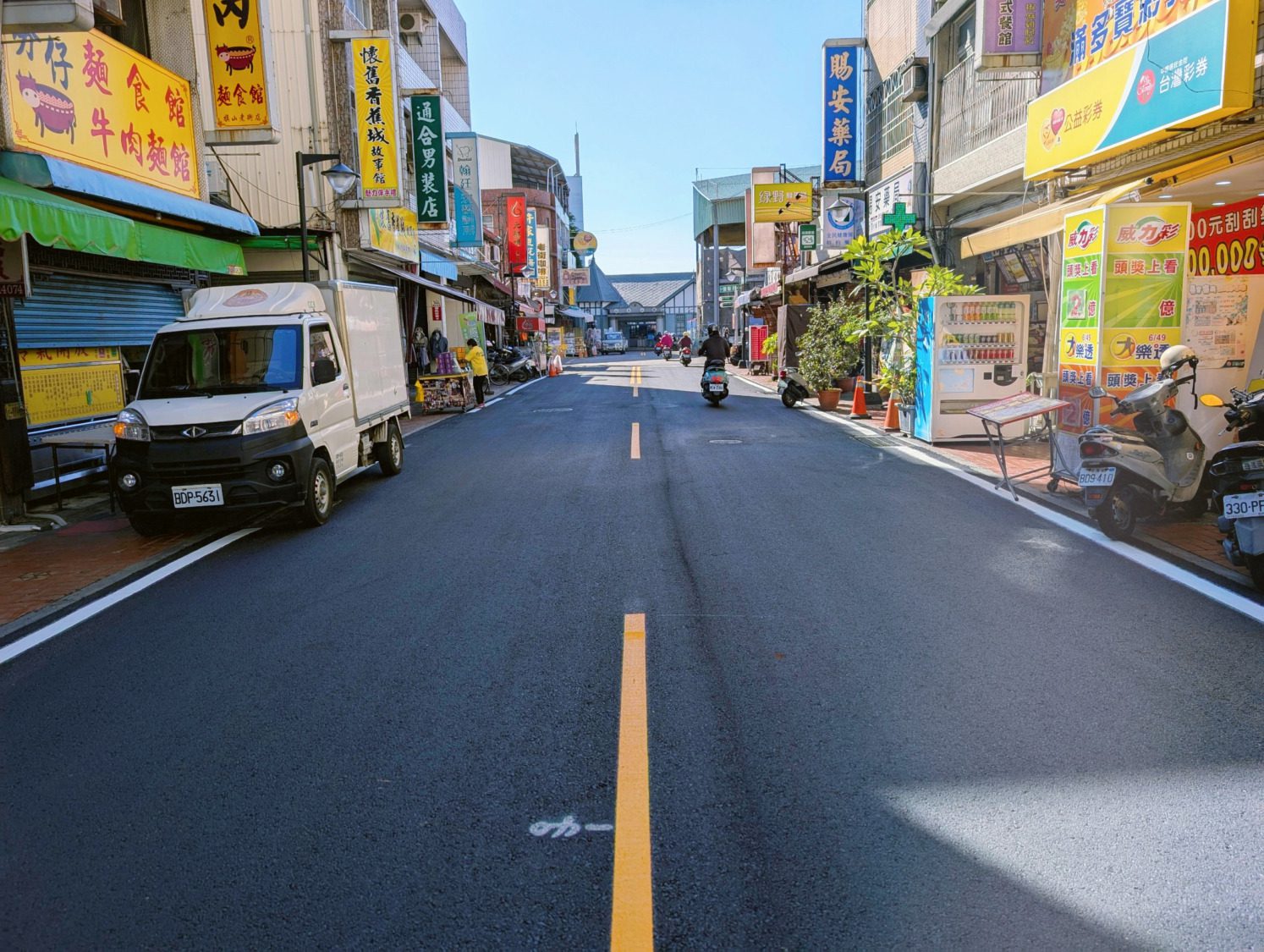 道工處說明,配合市府淨零永續目標,本次採用更少碳足跡的再生瀝青混凝土改善路面,在既有老化鋪面翻新的同時,也調整排水溝蓋與路面齊平,以提升道路平整度,亦新增道路主次要路口標示,增繪多處停、讓、慢等標線,提醒駕駛注意並養成於路口停車確認橫向無來車或行人後再開車的習慣,增進路口交通安全。
