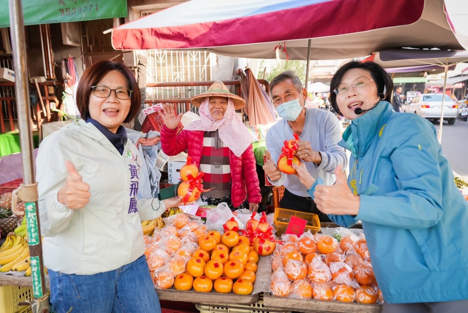立委林岱樺偕同市議員黃飛鳳,今(23)到大社果菜市場,就中央總預算亂刪,導致高雄市農業、工業發展受影響,進行宣講。