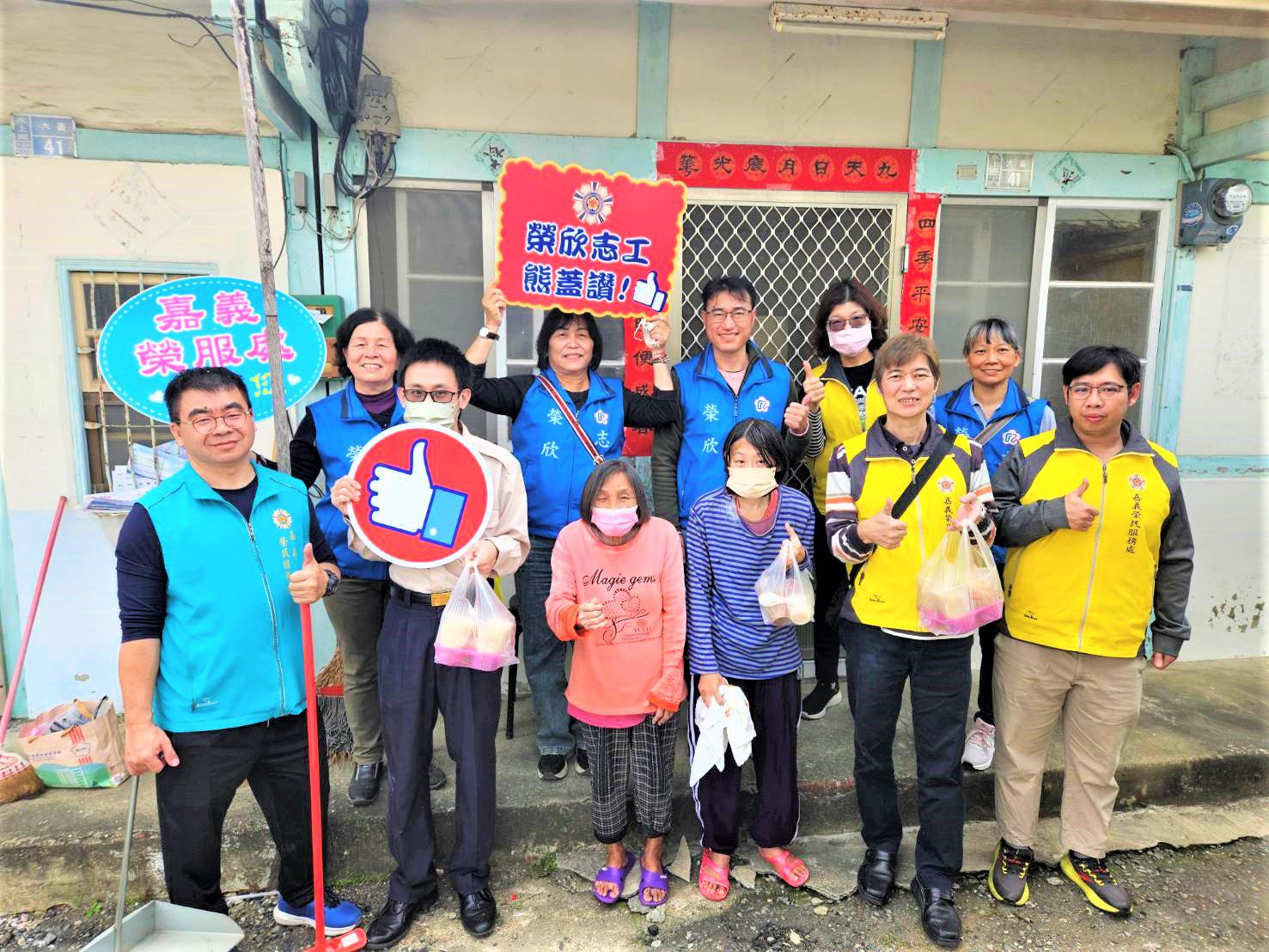 活動當天,嘉義榮民服務處志工等人先前往探視嚴世福榮民長輩,已百歲高齡的嚴世福榮民長輩精神抖擻,見到榮服處同仁關懷立即眉開眼笑;榮欣志工、替代役男、社區服務組長鄒純芳等人拿著清掃用具打掃客廳、廚房及臥室,收拾雜物及垃圾,隨後在大門及房門貼上春聯,並親手送上熱騰騰的愛心便當。