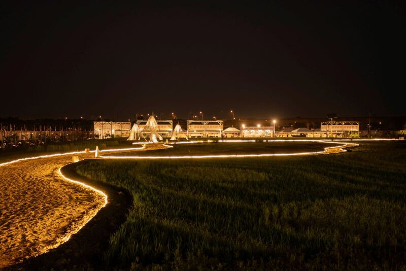周縣長表示,每年吸睛的彩稻田,有別於以往取得知名圖像授權,今年呈現屏東二峰圳伏流水的意象,打造屏東地景的專屬IP,更鼓勵民眾走入稻田邊,親近土地,開園時間也從十點半到晚上七點半,運用光環境創造出不同以往的景象,期間還特別推出限定便當,期待透過今年不同的改變與規劃,讓人感受耳目一新,也歡迎民眾逛完熱博接續到屏東四大燈區賞燈。