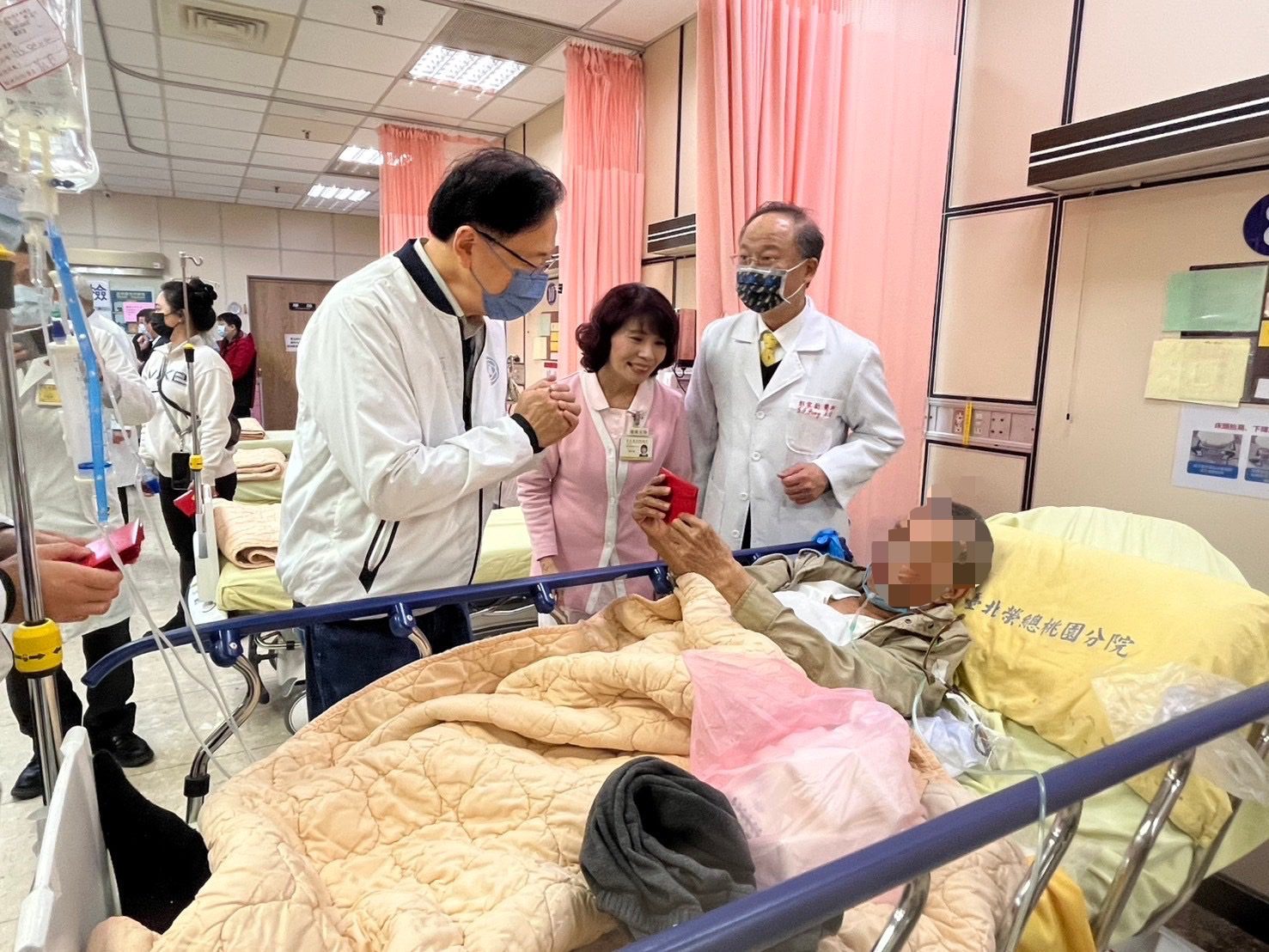 台北榮總桃園分院長彭家勛表示,非常感謝張善政親自到院慰問,體恤醫院同仁的辛勞與付出。春節是家人團聚的時刻,但醫護同仁們依然選擇留守第一線,默默奉獻,這份責任與使命感值得我們每一位市民的敬佩。尤其張善政特別走進急診科,向我們的急診醫護人員致以崇高的敬意,這份關懷與支持讓每一位醫護人員深受感動。守護當地鄉親的健康是北榮桃園分院的責任,尤其在春節期間,我們承擔著桃園市的急救責任,並持續提供24小時急診服務。我們將不斷強化桃園分院的醫療實力,並在現有的醫療品質基礎上進一步提升,確保每一位需要幫助的市民都能得到及時、有效的救治。