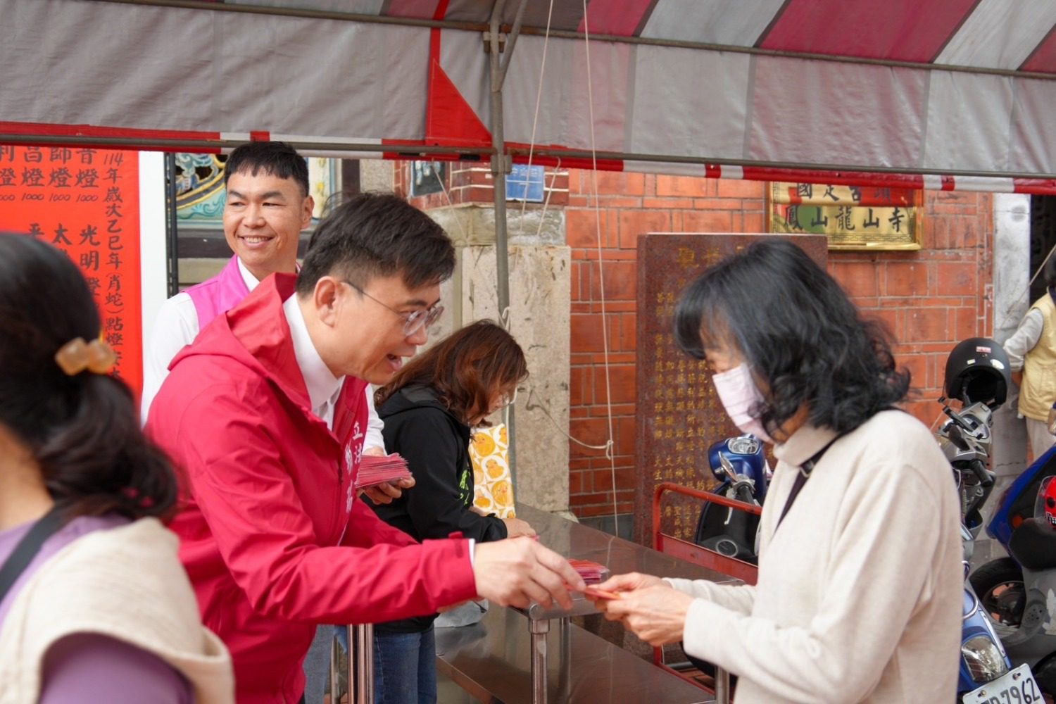 大年初三,立法委員賴瑞隆今(31日)前往鳳山五甲龍成宮、雙慈殿、龍山寺以及三民三鳳宮、鼓山代天宮、鹽埕文武聖殿等宮廟參拜祈福,並與市民朋友互祝恭賀新年、金蛇迎春好運來,獲得支持者熱情回應,鼓勵加油聲不斷。賴瑞隆表示,新年新希望,期盼高雄年年持續發展進步,大家什麼都順心,什麼都如意,新的一年心想事成!