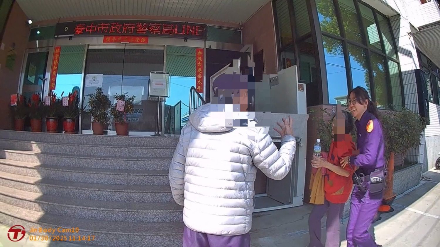 來自基隆的7旬蘇姓老夫婦春節期間南下臺中與女兒團聚,未料年初二早晨,例行晨運由於人生地不熟且不諳手機操作,老婦無法自行導航回家,丈夫察覺異狀後焦急聯繫,得知太太迷路後,立刻趕往派出所請求員警協助。