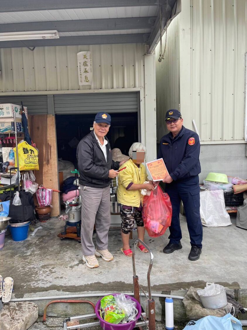 此次活動由佳彬弱勢清寒協進會自發募捐白米、醬油等民生必需品,幫助十餘戶弱勢家庭過冬。雙崎派出所員警不僅協助物資發放,更親自走訪社區,關心居民的生活狀況,傾聽實際需求,並提供犯罪預防、防詐騙、交通安全等宣導,提升社區安全意識。
