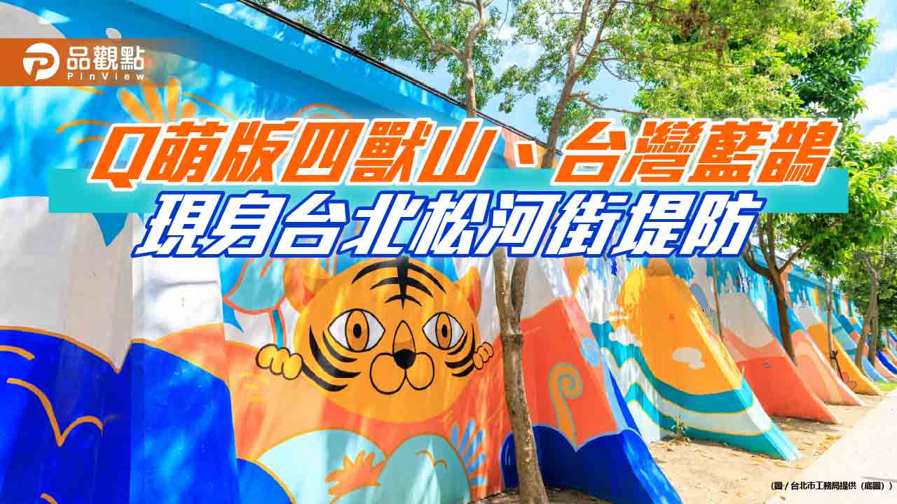 「臺北新畫堤」又有新畫作報到,台北市工務局水利處今(4)日表示,這次地點位於松河街,四種萌獸「象、獅、豹、虎」一同亮相,以超可愛的方式呈現出四獸山的形象,吸睛度百分百!畫作也連結了地方歷史,出現了小火車和百年刺桐老樹……等,假日到饒河街夜市時,不妨順利來欣賞這幅創作。