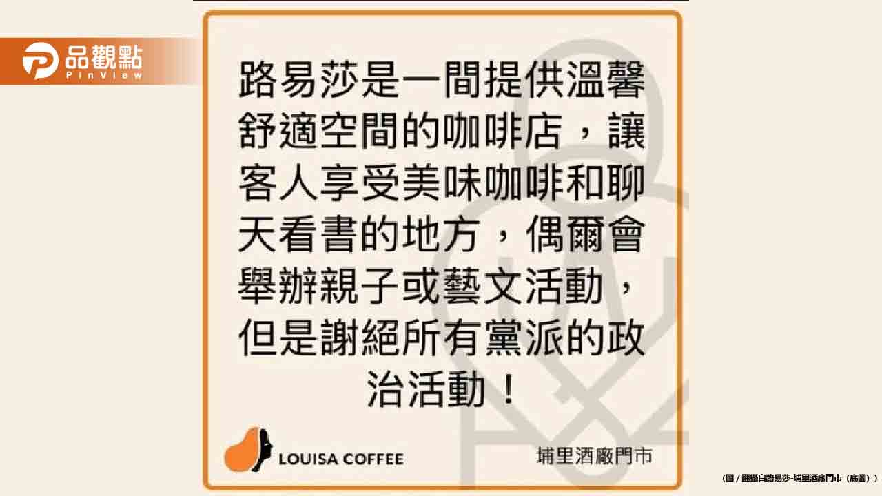 事後,路易莎埔里酒廠門市在社群媒體發布聲明,表示店家是提供顧客享受咖啡、聊天和閱讀的溫馨空間,偶爾會舉辦親子或藝文活動,但謝絕所有黨派的政治活動。店家並撤離了戶外桌椅,張貼「謝絕所有黨派的政治活動」的公告。