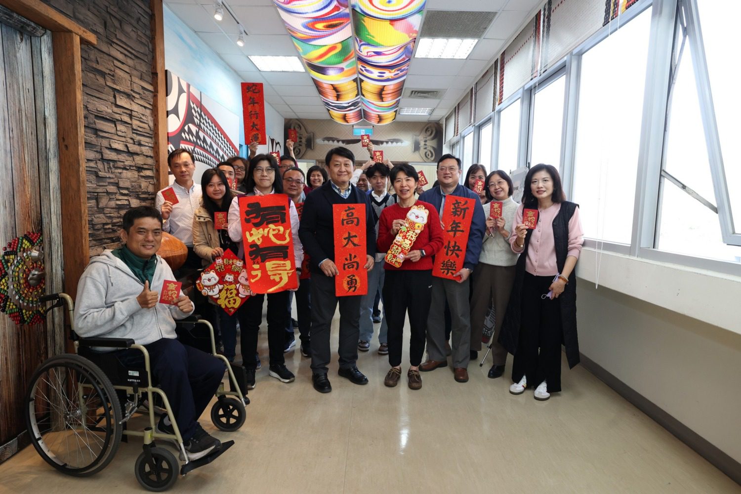 國立高雄大學今(5)日舉行新春團拜活動,由校長陳啓仁率領行政團隊,親赴各學院、處室及中心進行新春走春祝賀。活動中特別準備「金蛇迎春」祝福紅包,向全校教職員表達感謝之意。