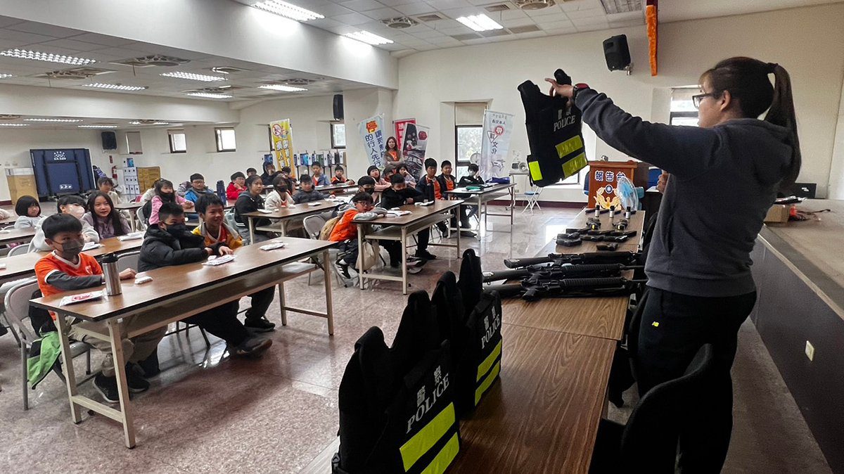 此次參訪學生年齡約9到12歲,分局安排婦幼、交通安全、防詐騙、反校園霸凌宣導時,也針對各年齡層設計宣導內容與徵答題目,以播放宣導影片方式告知小朋友勿於網路上透漏私密照片與訊息,並小心網路交友誘騙私密照或詐騙;過馬路要行走於行人穿越道;同時與家人都要小心提防詐騙訊息,提防被騙;於校園要避免霸凌並勇於告訴師長處置。每段宣導內容均安排有獎徵答活動,小朋友們均踴躍搶答,氣氛熱絡,在寓教於樂中,讓各種正確法治與人身安全觀念紮根。