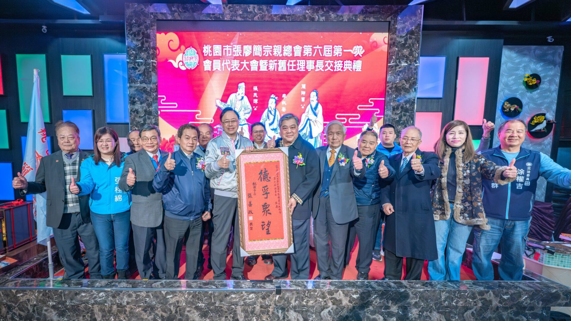 桃園市長張善政今(6)日中午前往八德區,出席「桃園市張廖簡宗親總會第六屆第一次會員代表大會暨新舊任理事長交接典禮」。張善政表示,感謝前任會長簡志松帶領宗親會穩健成長,並協力市政推動,期許新任會長張永源持續推動宗親聯誼與發展,帶領宗親會邁向更高層次。適逢農曆新年期間,張善政也特別代表市府團隊向宗親們致上新年祝福,祝願大家新年快樂、萬事平安。