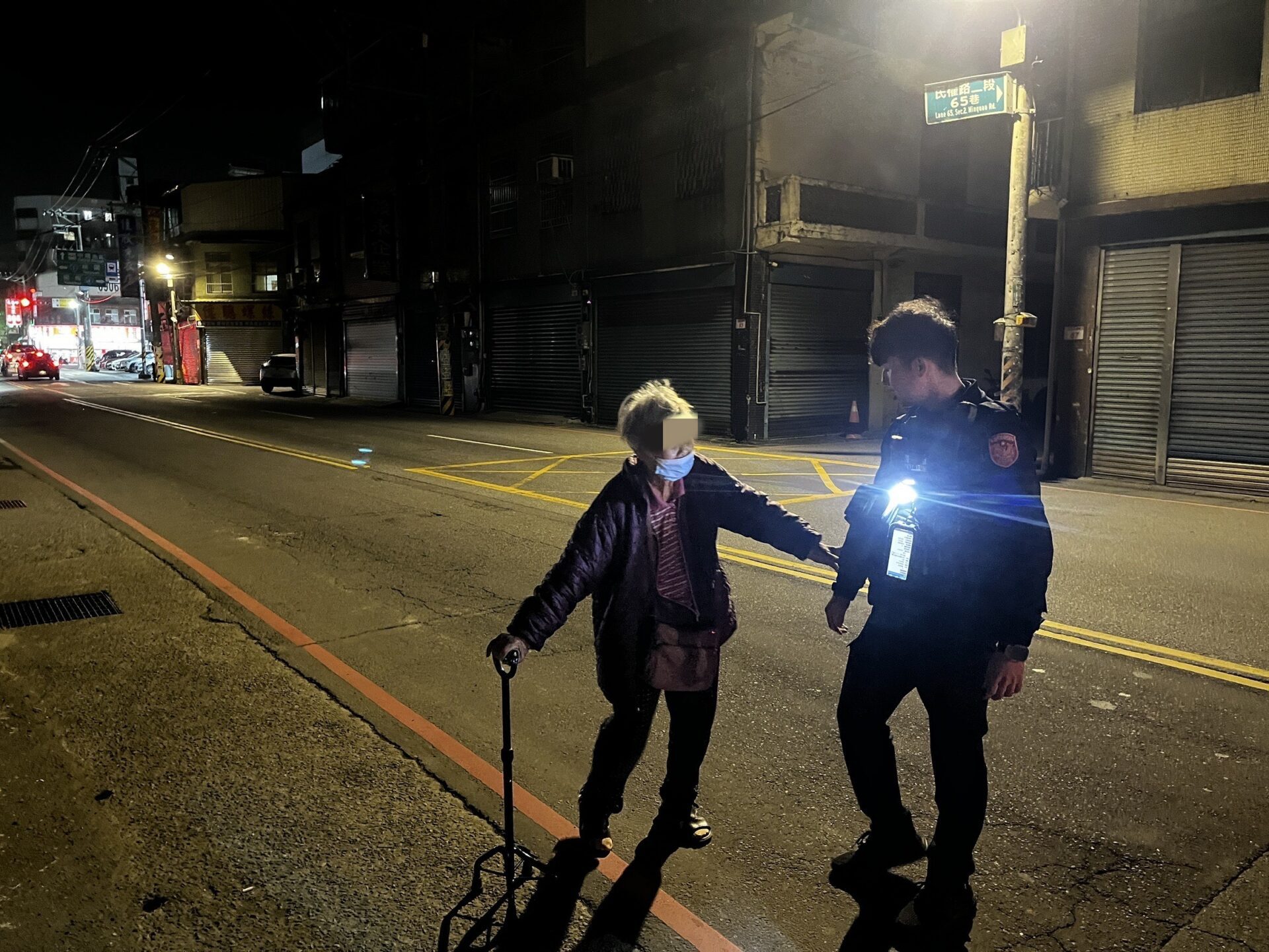 桃園市中壢區一名82歲賴姓老婦昨(7)日晚間11時許獨自拄著拐杖在路上徘徊,搖搖晃晃的樣子看起來隨時可能跌倒,熱心民眾見狀向中壢警分局報案,員警立刻到場關心,發現老婦已經迷路超過10小時,趕緊將她帶返派出所安置,並提供水、點心補充體力,並透過老婦攜帶的健保卡查詢身分,順利聯絡家屬將其平安接回家。