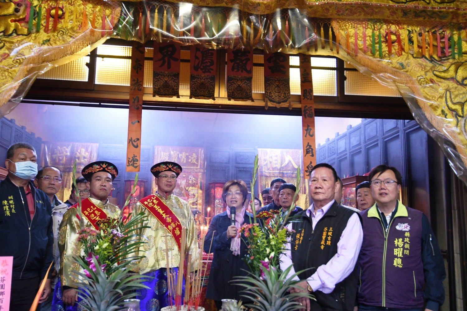 王惠美表示,芬園鄉九角頭迎天公,傳承至今已有百年以上的歷史,可說是地方重要信仰活動,由九個角頭輪流擔任爐主,今年由圳墘角交接給八寮角,為了迎接這一年一度的盛事,大家都熱情來參與,不僅是一個宗教儀式,更是傳承百年傳統文化,希望大家在新的一年都能闔家平安,百業興旺,未來縣府也會持續來協助將芬園迎天公活動申請列為無形文化資產,相信在大家的共同努力下,這個百年文化不僅發揚光大也能繼續傳承下去。