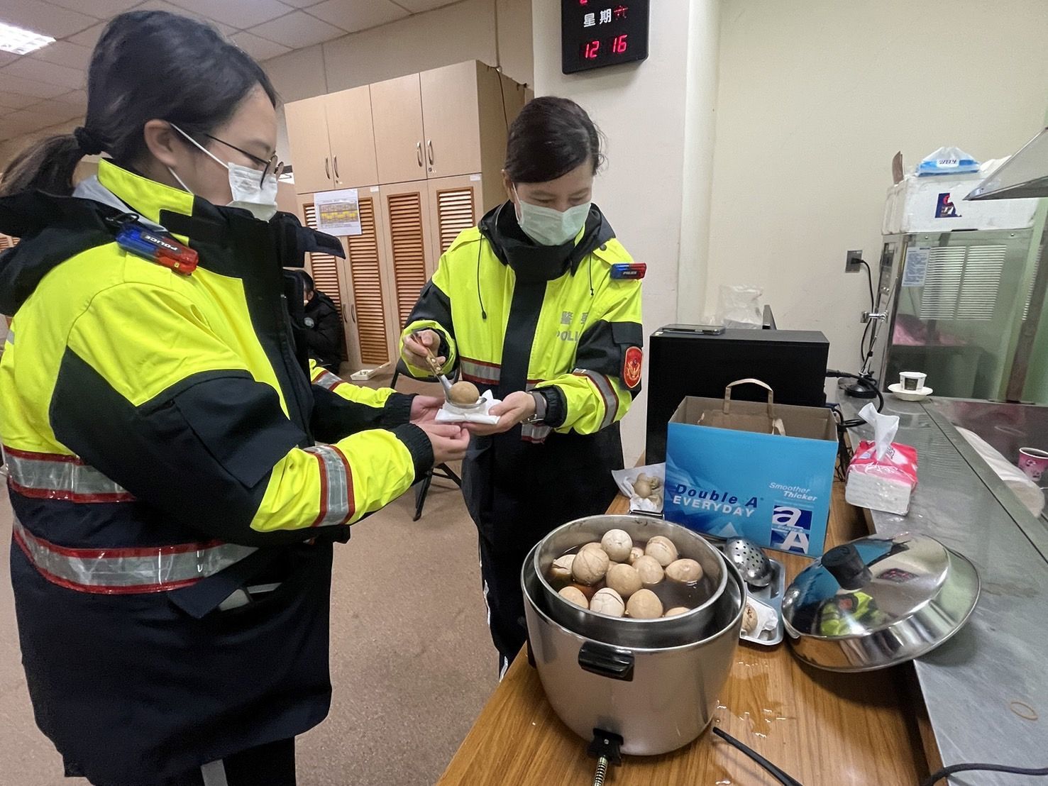 暖呼呼、香噴噴的茶葉蛋,讓執勤員警都能暖身又暖心。圖:警方提供