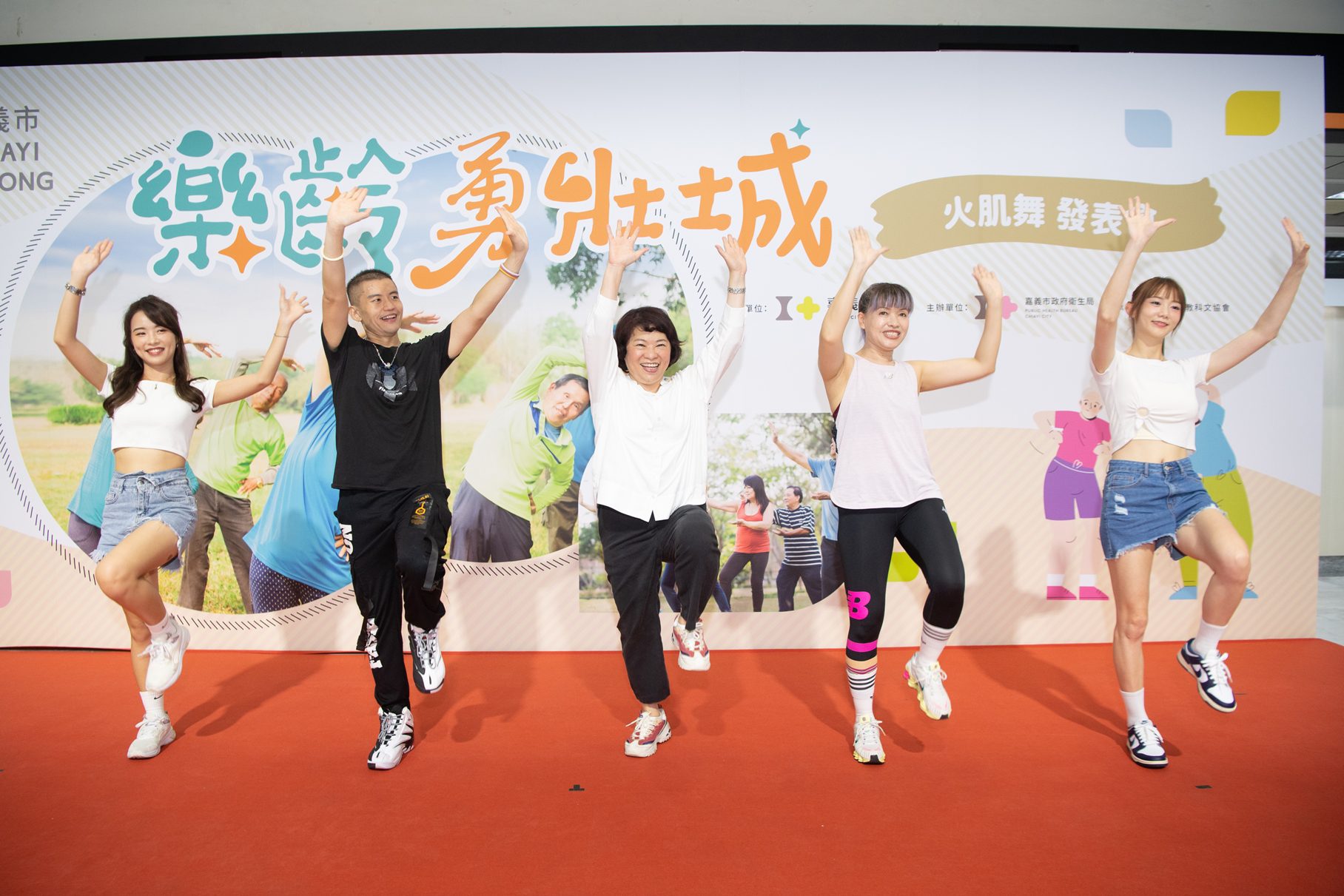 黃敏惠市長表示,嘉義市截至今年8月份65歲以上的高齡人口超過18%,2025年時,嘉義市可能成為老年人口占比大於20%的超高齡化社會,雖然年齡的增長不可避免,但運動與豐富精采的生活卻如同「社會的健康處方籤」,能使人身心靈常保年輕。嘉義市不僅推行「全嘉樂起來」、「全嘉都是作家」,以藝文鼓勵長者發展興趣與專長,今日更以所有嘉義人都耳熟能詳的「火雞肉飯」為發想,設計全齡全民都能琅琅上口跟著唱又好學的「火肌舞」,舞步中加入抬腿、伸展等動作,讓大家留住肌耐力、打造好體力。很高興看到今天「全嘉動起來」能讓坐著輪椅的爺爺奶奶們也舞動「火肌舞」,社區大哥、大姐也攜手可愛的幼稚園小朋友們一起跳了起來。嘉義人常以「就像在吃雞肉飯」來形容事情很容易,期待運動對嘉義市民就如同「吃雞肉飯」般變成日常中的一部份,也歡迎所有市民從今天開始大跳「火肌舞」、動起來,2024年一同攜手完成「最多人進行高抬腿運動」的挑戰、締造金氏世界紀錄。