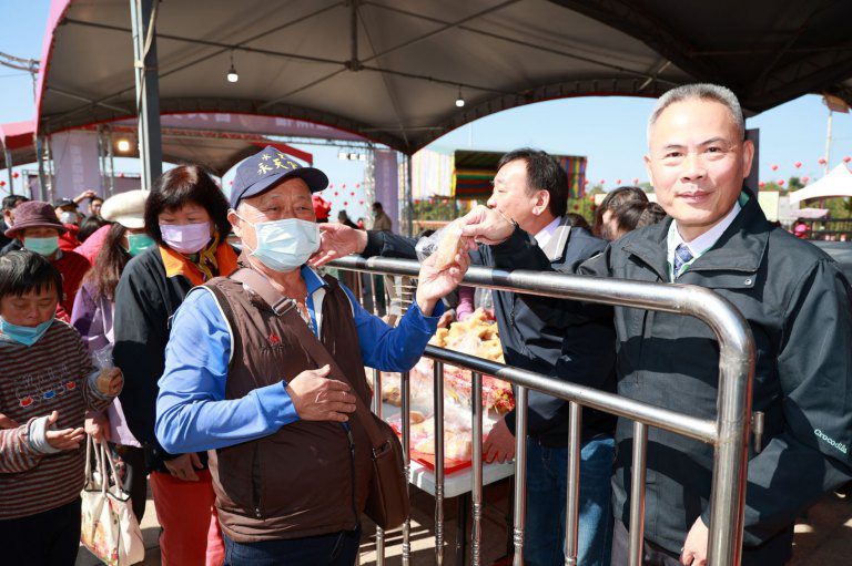 ▲受天宮分享米糕,很多信眾聞風而來排隊領取。(圖/南投縣政府提供)