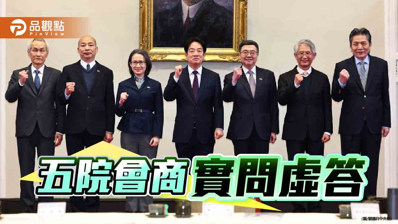 在朝野嚴重對峙的亂象中,賴總統拋出五院會商的邀請,外界原本就不看好這場會議能帶來實質對話。賴總統果然含糊閃躲,甚至藉由佛經拐彎訓人,讓這場「國政會商」更像是一場充滿算計的政治戲碼。