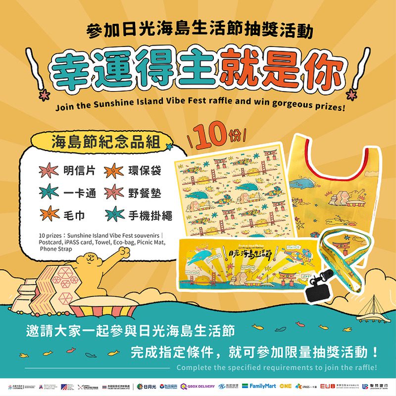 隨著日光海島生活節即將登場,限量抽獎活動也登場!只要關注市府官方社群、分享日光海島生活節貼文,就有機會獲得限量海島風蜜柑一卡通、毛巾、手機掛繩等紀念品,以及菲律賓星級飯店住宿券,最大獎則是高雄——馬尼拉來回機票!趕快追蹤高雄市政府官方社群,別錯過這次難得的機會!